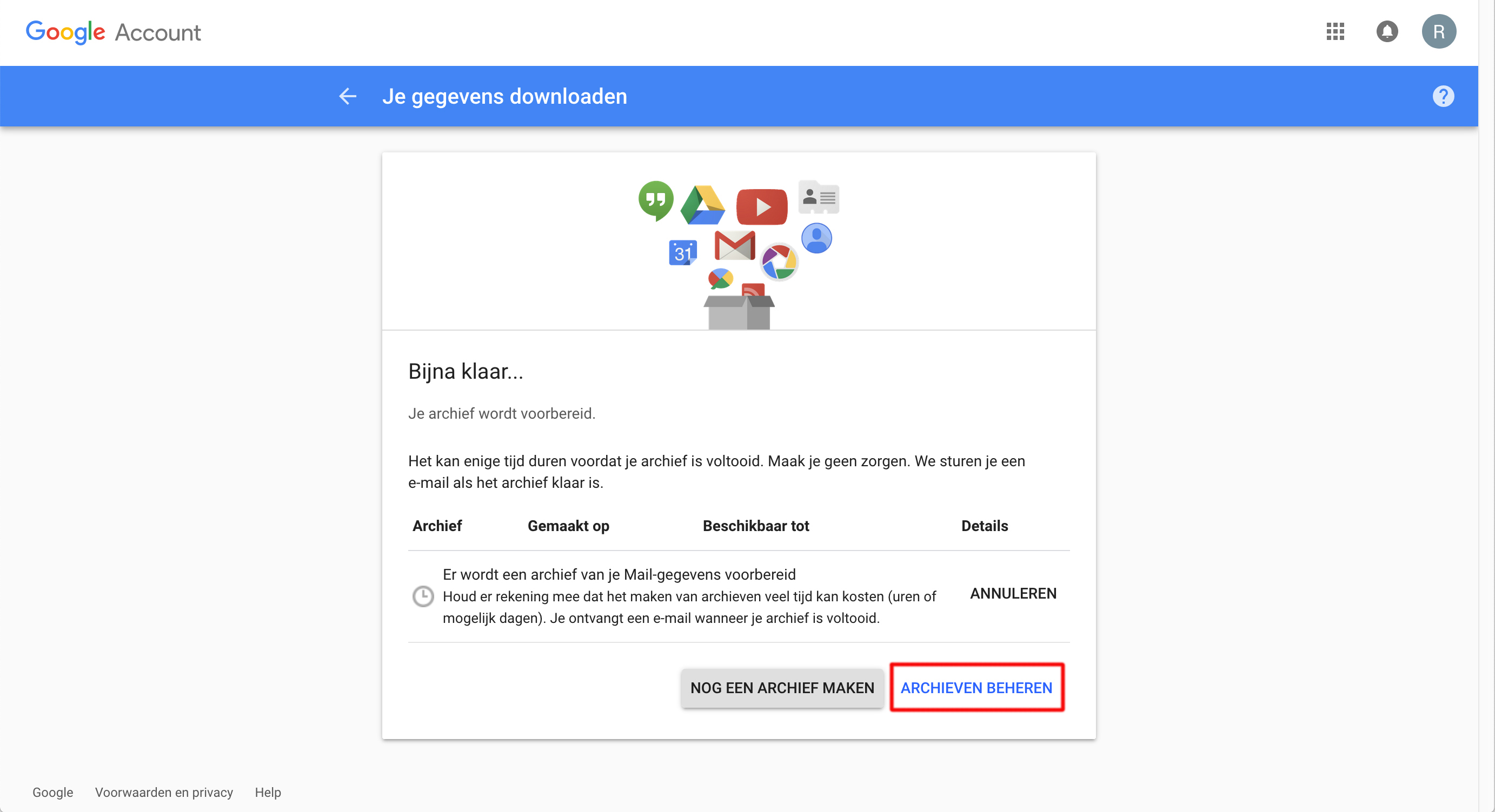 Screenshot Archief beheren